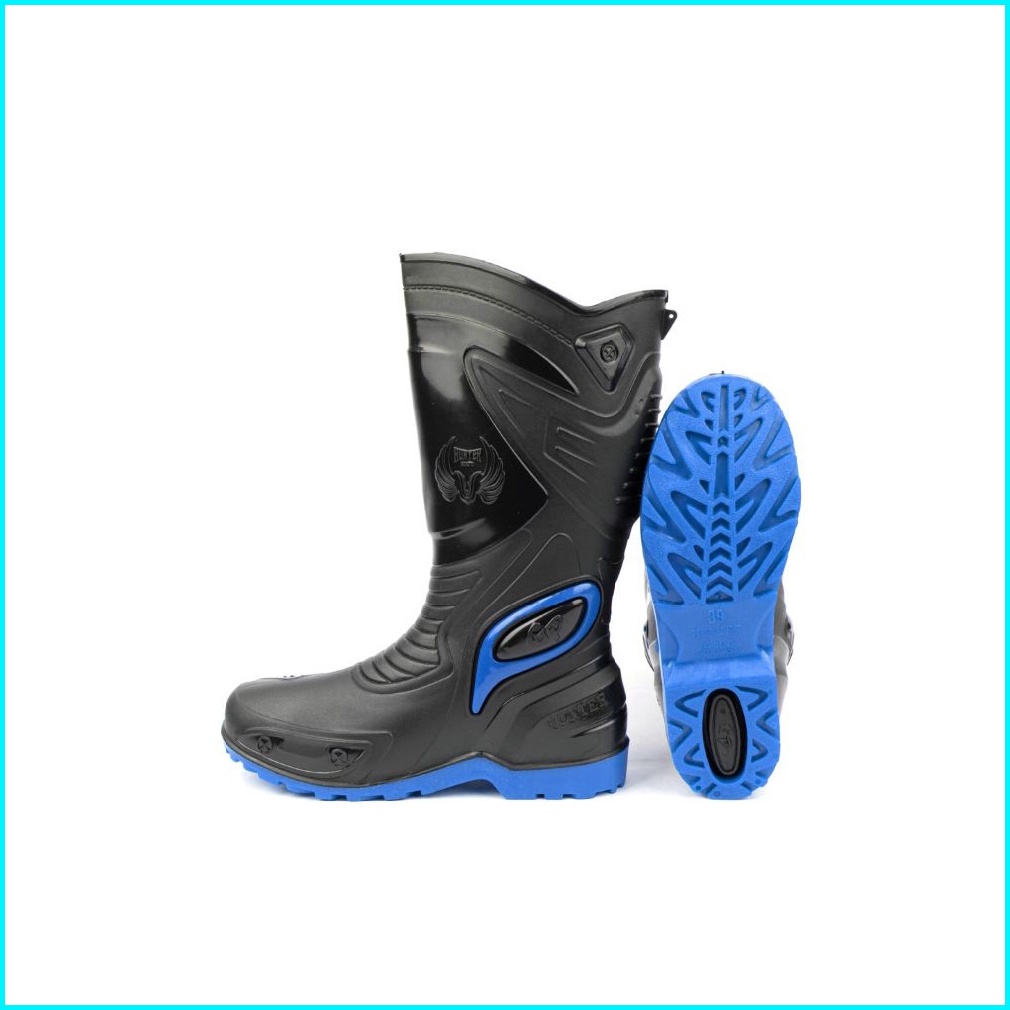Sepatu Boot Tinggi Hunter Gp 1 Hitam Biru Boots Karet Lokal Lentur Ringan Anti Air Slip Touring
