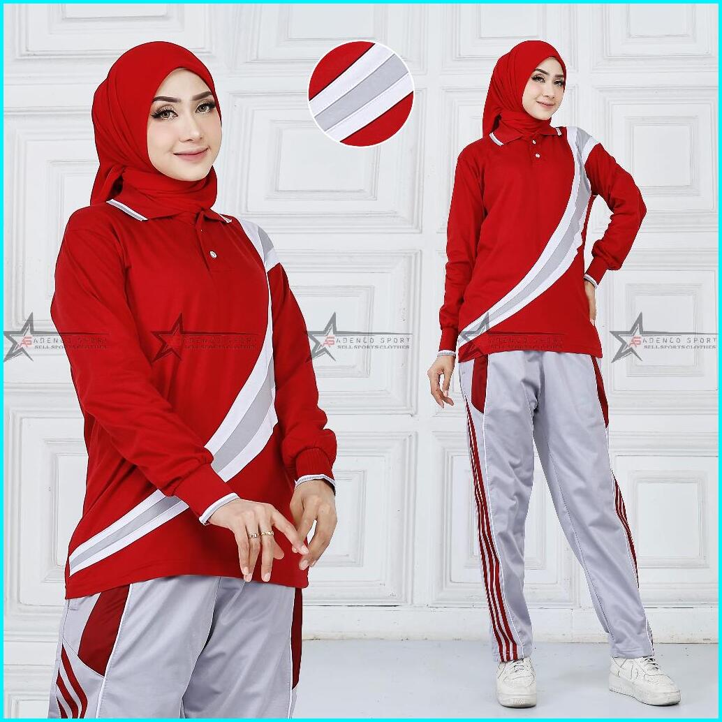 Setelan Seragam Baju Olahraga Senam Wanita Lengan Panjang - Stelan Kaos Training Olahraga Wanita