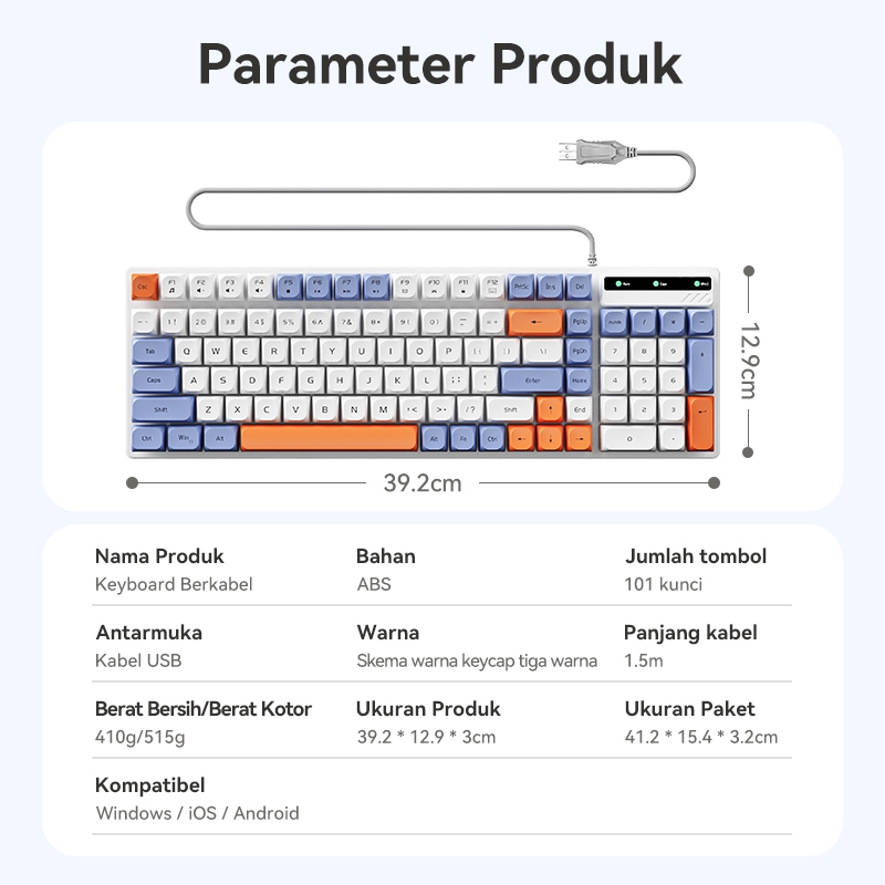 OLYPS Keyboard & Mouse Set Kabel USB 101 Keys With FN Multimedia Keys Ergonomic Design for PC/Laptop