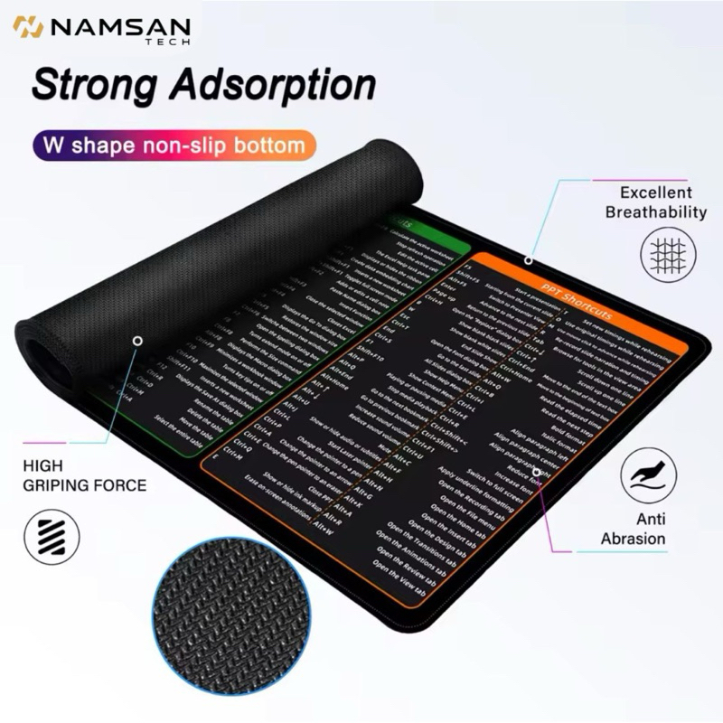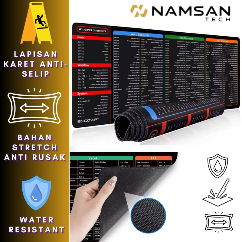 NamsanTech Mouse Pad Kantor Rumus Lengkap Microsoft & Photoshop Shortcut Key AntiSlip size 900x400mm