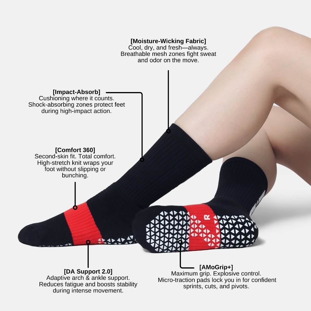 (BUNDLE) greper Socks Pro White & Black - Kaos Kaki Tennis Padel - Grip Socks Anti Slip - Kaos Kaki Sepak Bola Basket Gy