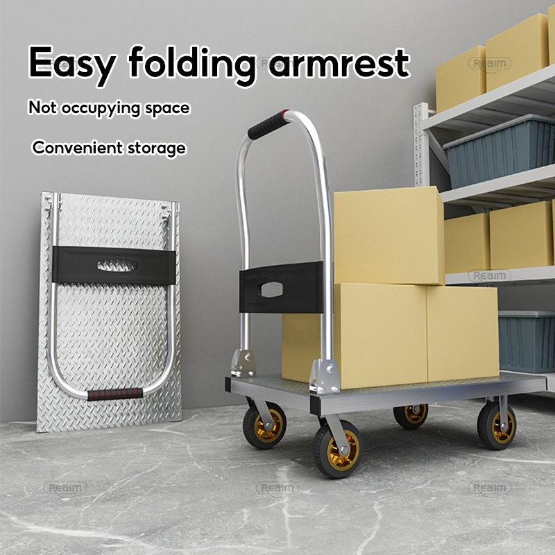 Reaim Handtruck Troli Barang Lipat Hand Truck Folding Cart Silent Wheel Troli Angkut Handtruck besi