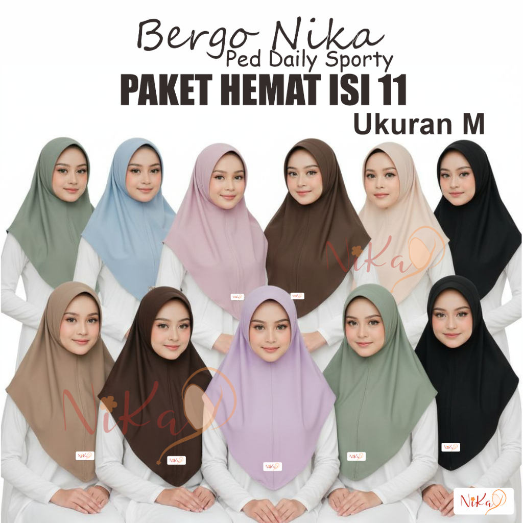 (ISI 10+1 BONUS) JILBAB BERGO HAMIDAH UKURAN M JERSEY PREMIUM JILBAB INSTAN SPORT