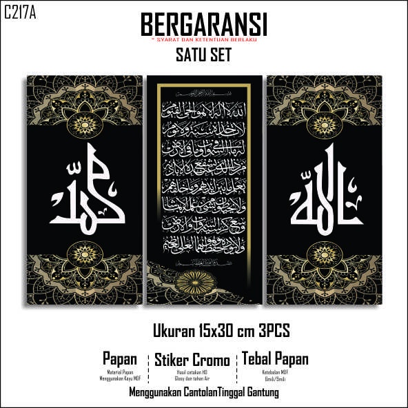 IDE161 - Dekorasi Dinding / Hiasan Dinding Kaligrafi Allah dan Muhammad Ayat Kursi