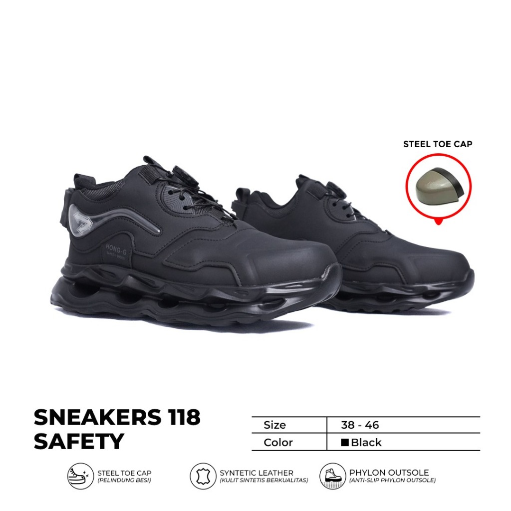 Sepatu Safety shoes sport ujung besi casual hitam pria dan wanita Anti Air Anti Smashing Stab black