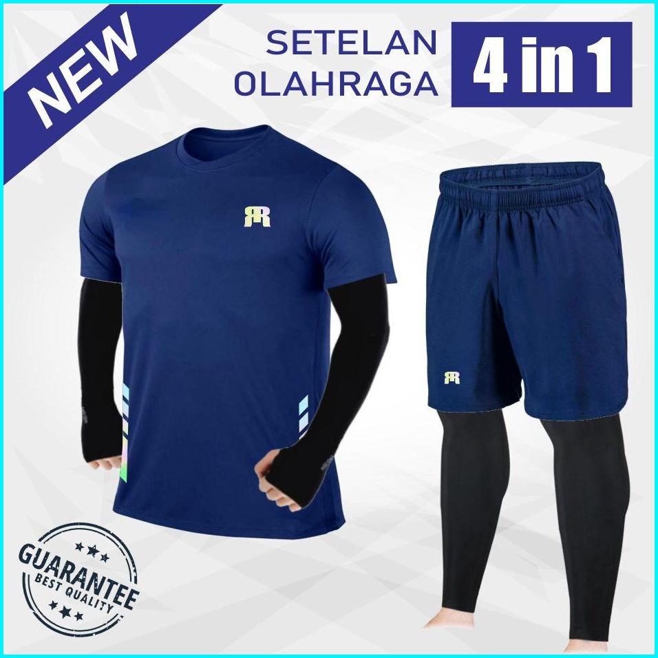 Jersey Olahraga 4 In 1 Baju Setelan Dan Manset Set Lengkap Bahan Dry Fit Adem Menyerap Keringat Pria Wanita Cepat Kering
