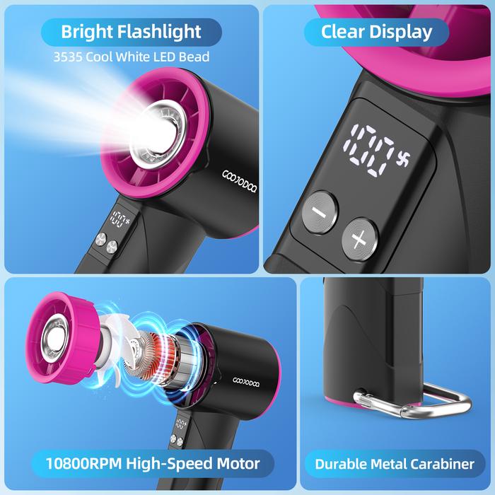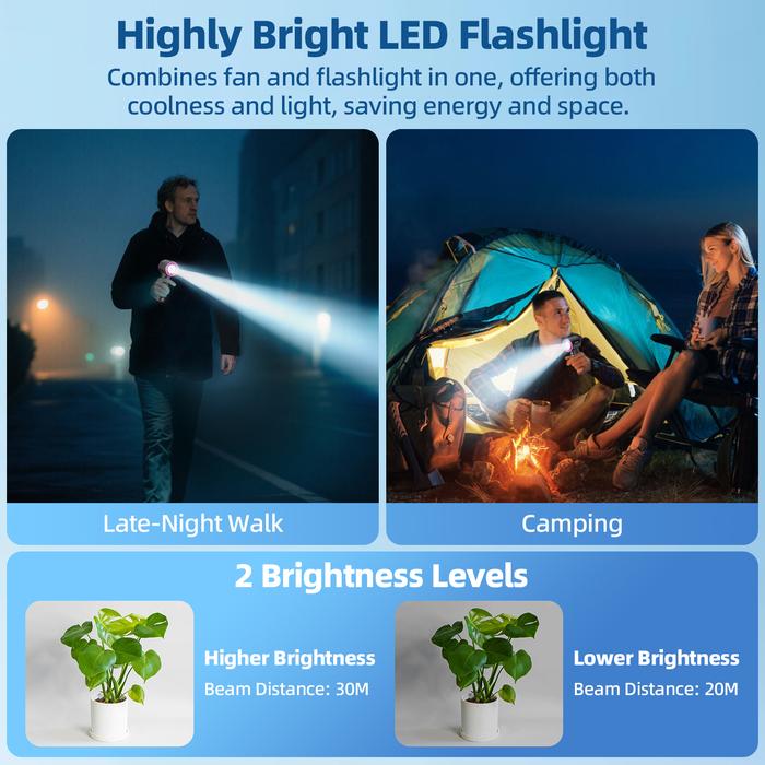 GOOJODOQ GFS002 HIGH-SPEED PORTABLE HANDHELD FLASHLIGHT FAN STRONG WIND PORTABLE TURBO FAN WITH FLASHLIGHT - ICING BLUE