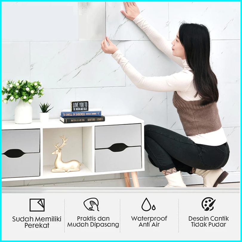 50pcs Wallpaper Dinding Vinyl Marble 30 X 30 Cm Lantai Vinyl Keramik Marbel Granit Stiker Lemari Cabinet Marbel