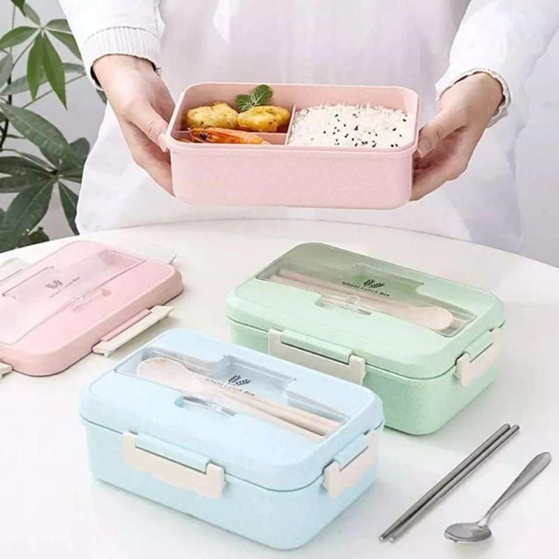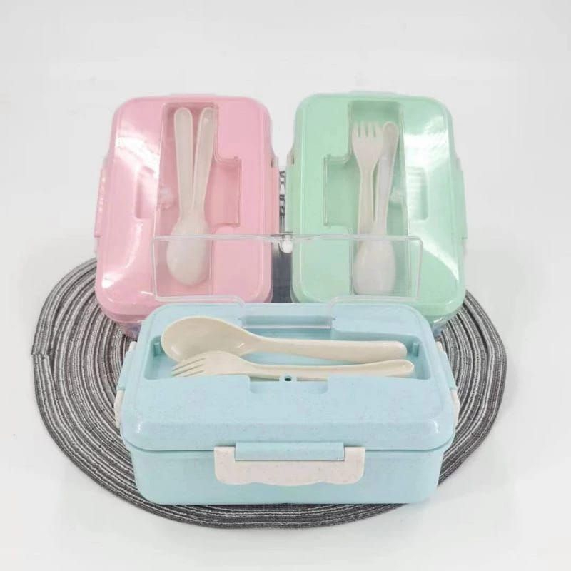 LUNCH BOX KOTAK MAKAN Tempat Makan 1000ml 4 In 1 Kotak Bekal Jerami Lunch Box Set