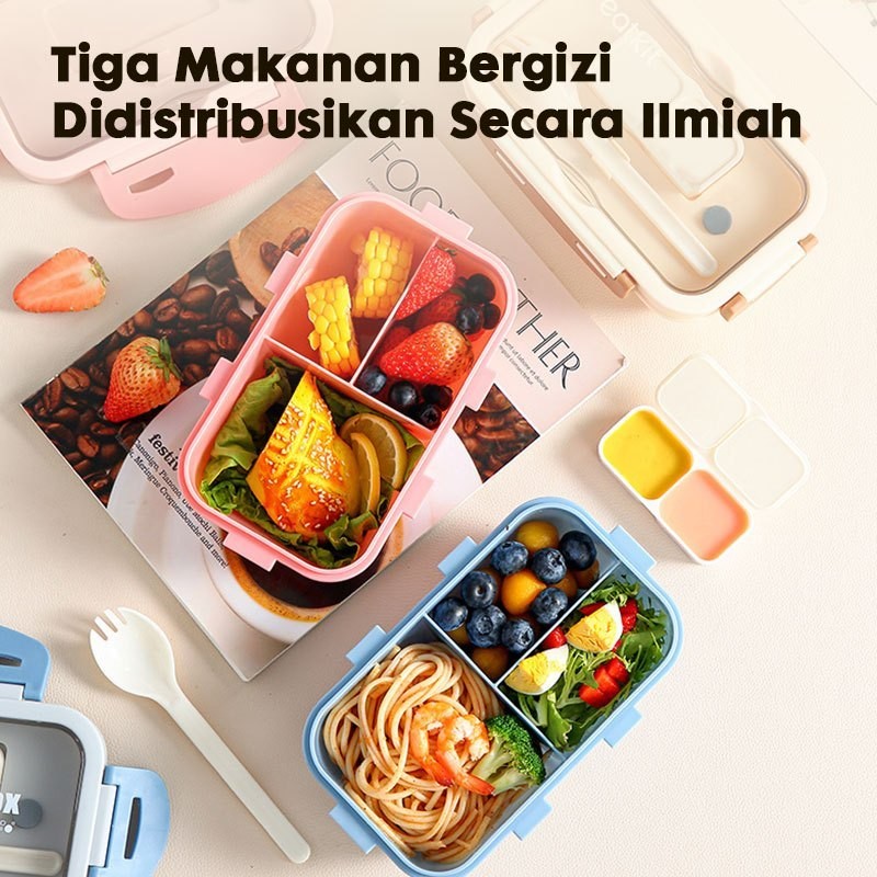 LUNCH BOX KOTAK MAKAN [Medan Ready Stock] Eatkit 3 In 1 Lunch Box Set | Lunch Box Microwaveable 1000ml | Anti Bocor Free