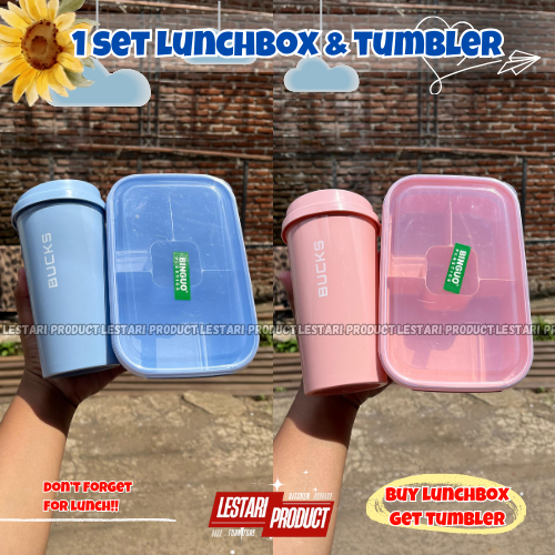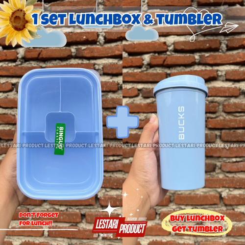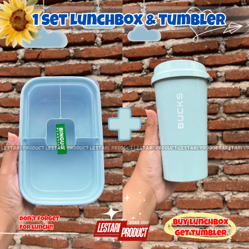LUNCH BOX KOTAK MAKAN 1 SET LUNCHBOX BINGUO & TUMBLER CLIO ( BELI MISTING DAPAT BOTOL MINUM ) | LUNCHBOX PLASTIK | MISTI