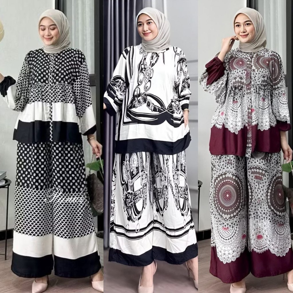 Setelan One Set Rayon Motife Terbaru Viscose SIZE M L XL XXL Wanita kekinian Jumbo Busui