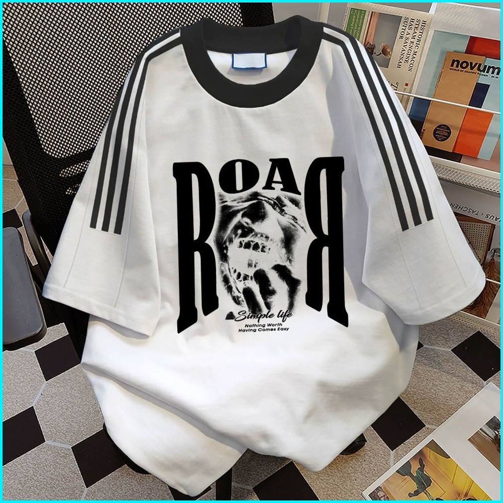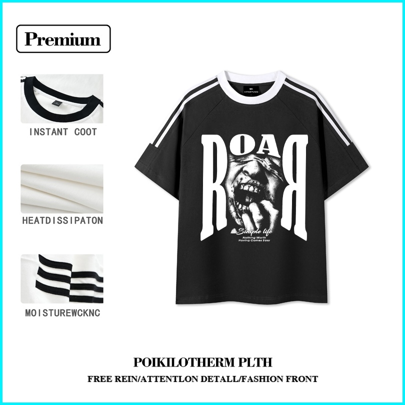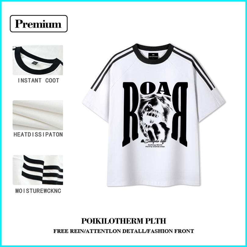 Roar Pencetakan Gaya Hip Hop Amerika Kaos Pria Dicetak Tiga Garis Kaos Lengan Pendek Pria Lengan Pendek Jersey Atasan Pu