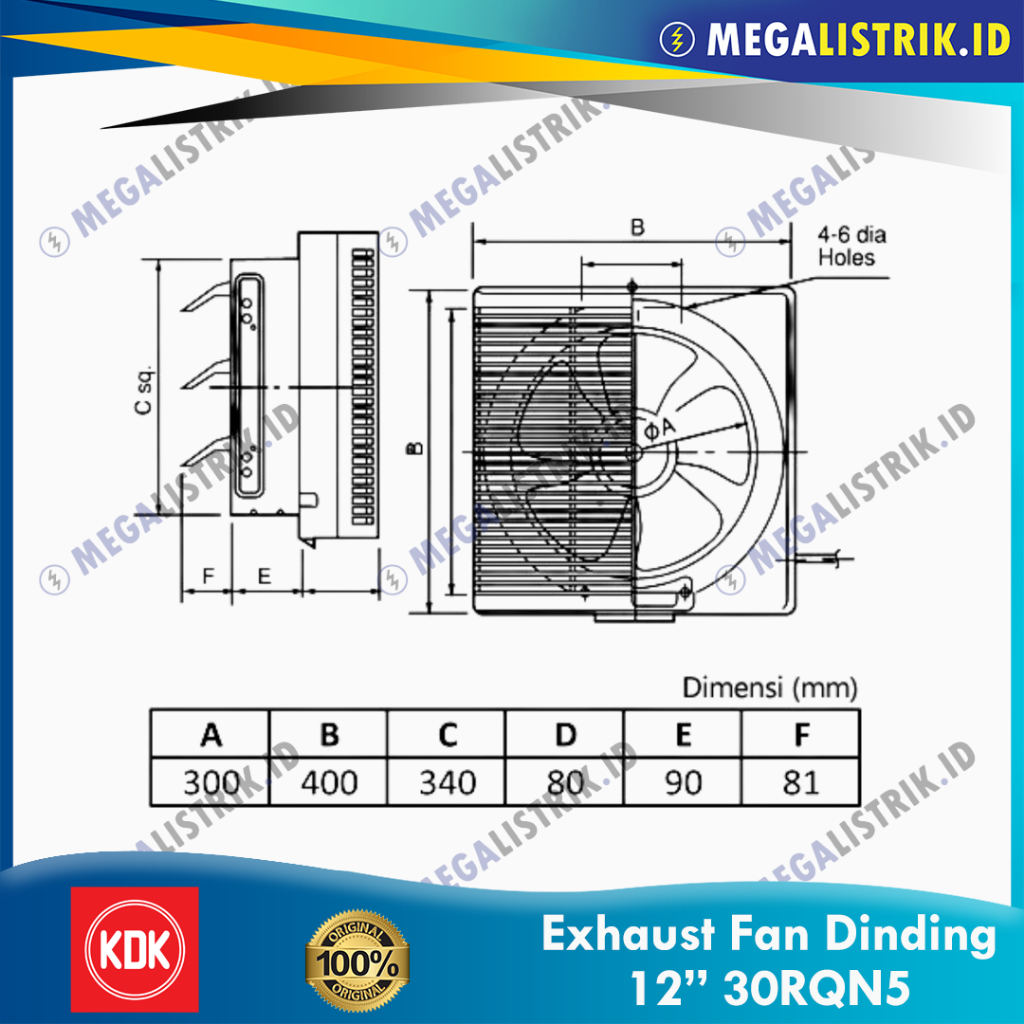 KDK 30RQN5 KIPAS ANGIN HISAP DINDING 12" / EXHAUST FAN WALL 30RQN 30 CM 12 INCH