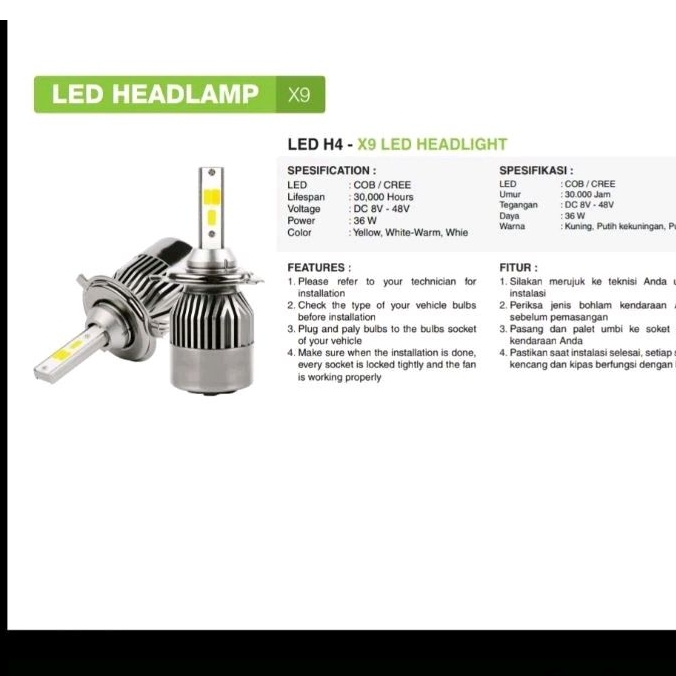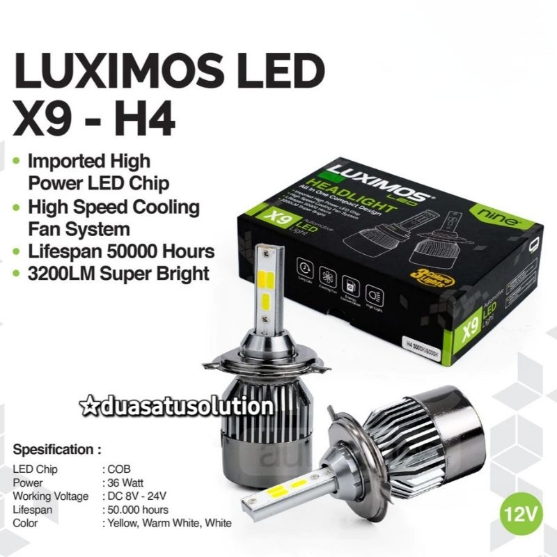 LAMPU LED UATAMA MOBIL 3 WARNA TIPE SOKET H4 36WATT NINE LUXIMOS X9 EXTREME BRIGHT