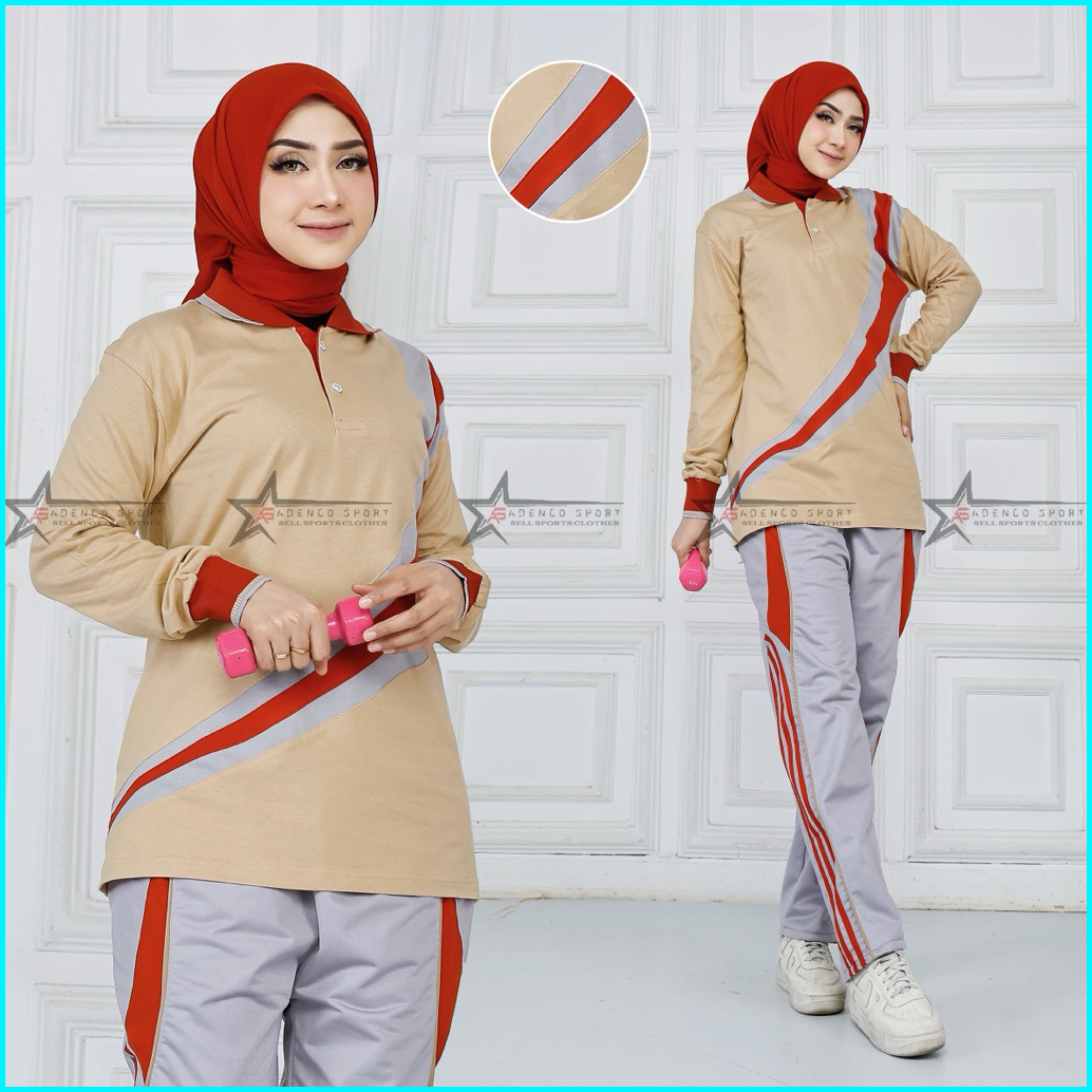 Setelan Baju Olahraga Senam Wanita Lengan Panjang Terbaru Seragam Kaos Training Olahraga Senam