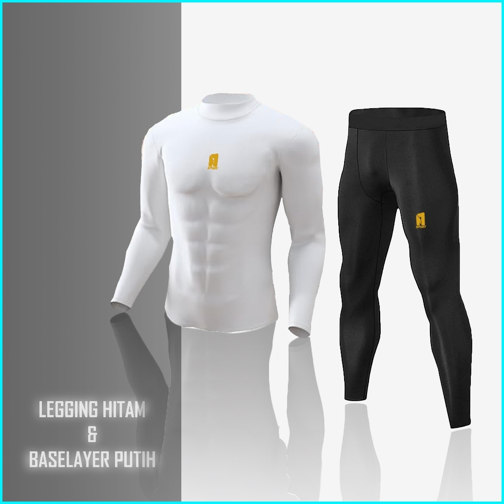 Njstore Stelan Olahraga Pria Baju Manset Baselayer Olahraga Legging Panjang Futsal Gym Premium