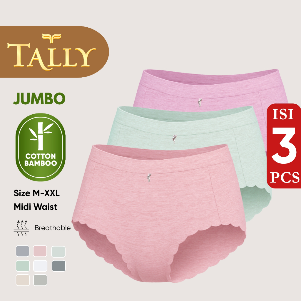 TALLY Paket 3 Pcs atau 6 Pcs Celana Dalam Wanita Bahan Katun Bambu Seamless Fit to M 3XL CD JUMBO Soft Panties CD 3604 /