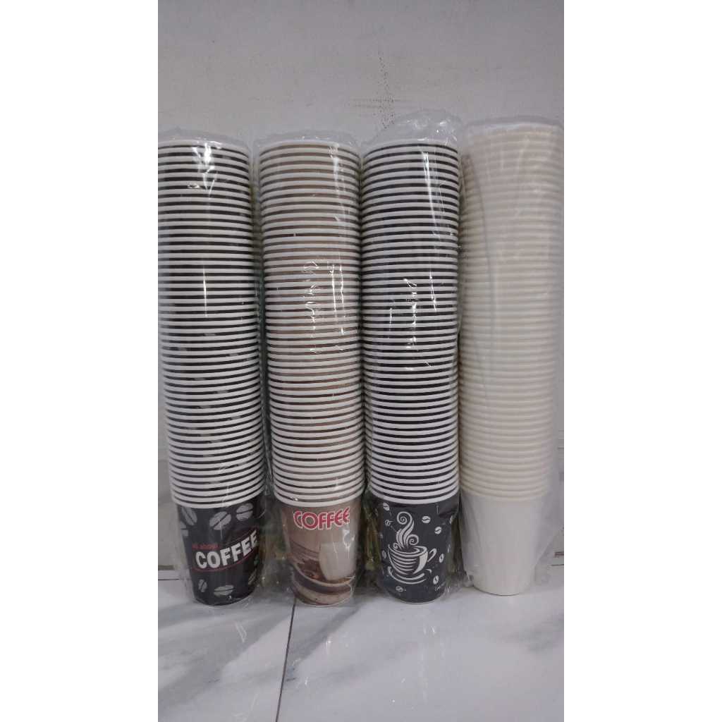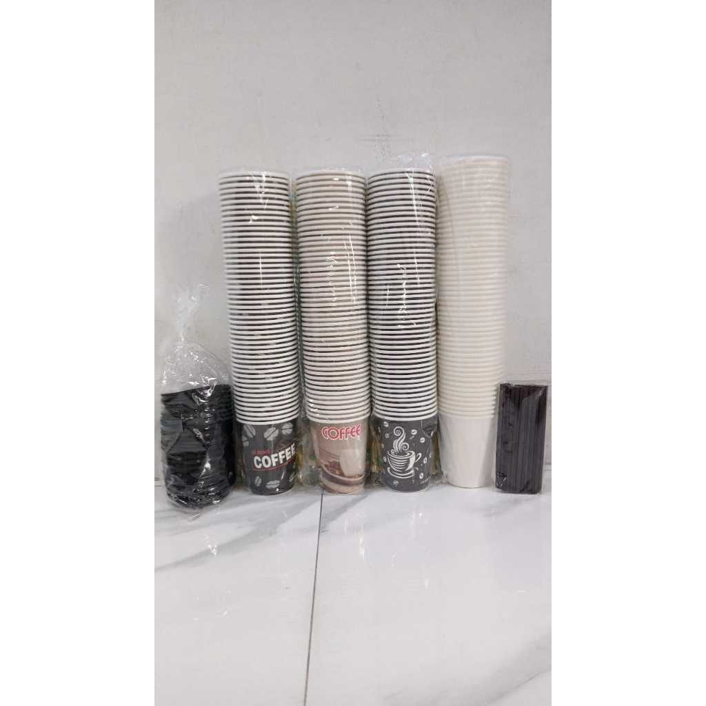 Paper Cup (50set) Motif Polos 8 oz + Tutup + Sedotan 8oz Gelas Kopi Kertas Komplit Set
