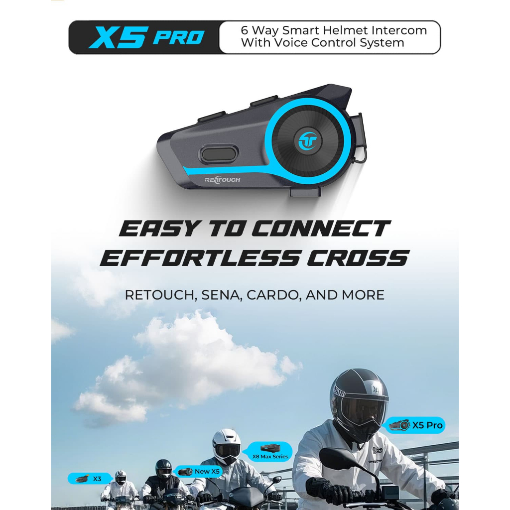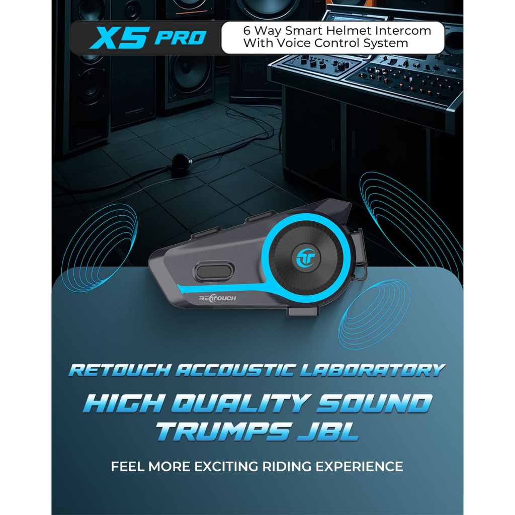 Smart Helmet Intercom RETOUCH X5 Pro AI Voice Control 6 Riders Connection Helmet Communication Systems