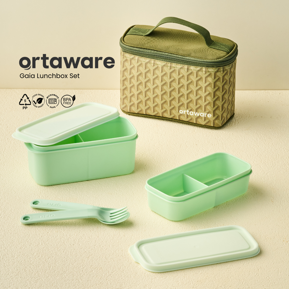 LUNCH BOX KOTAK MAKAN [GAIA Lunchbox Set] | ORTAWARE | Tas + Tempat bekal 2 sekat + Sendok Garpu | BPA FREE MICROWAVE SA