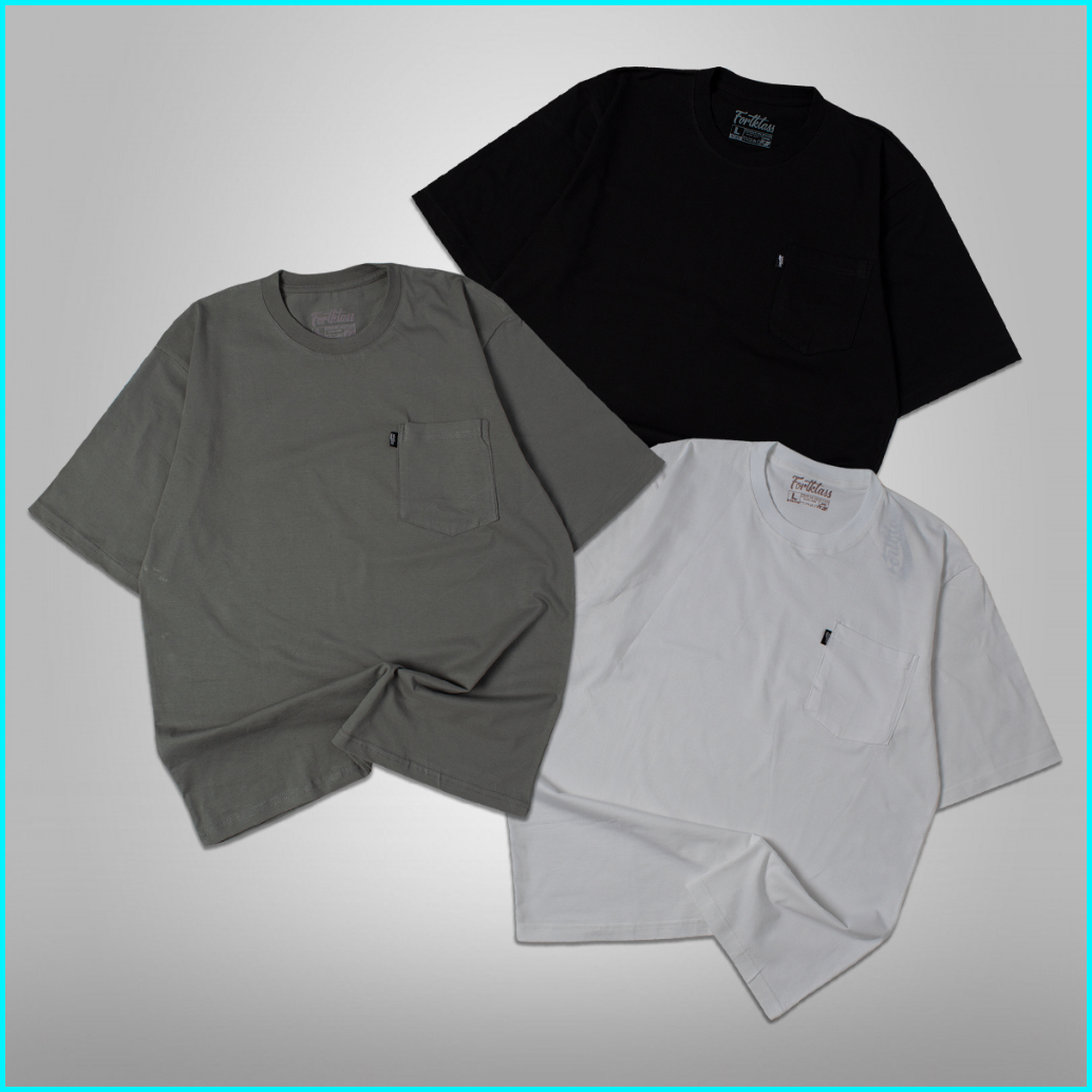 Fortklass Kaos Oversize Kantong Kaos T-shirt 24s Cowok Premium Katun Combed 24s