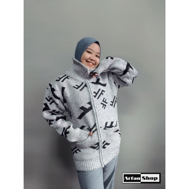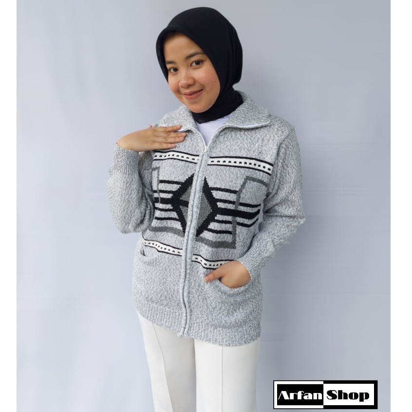 Jaket Rajut Resleting Leher Tinggi Tebal Premium Pria Wanita Sweater Knit Zipper Turtleneck Motif Saku Baju Hangat Ibu