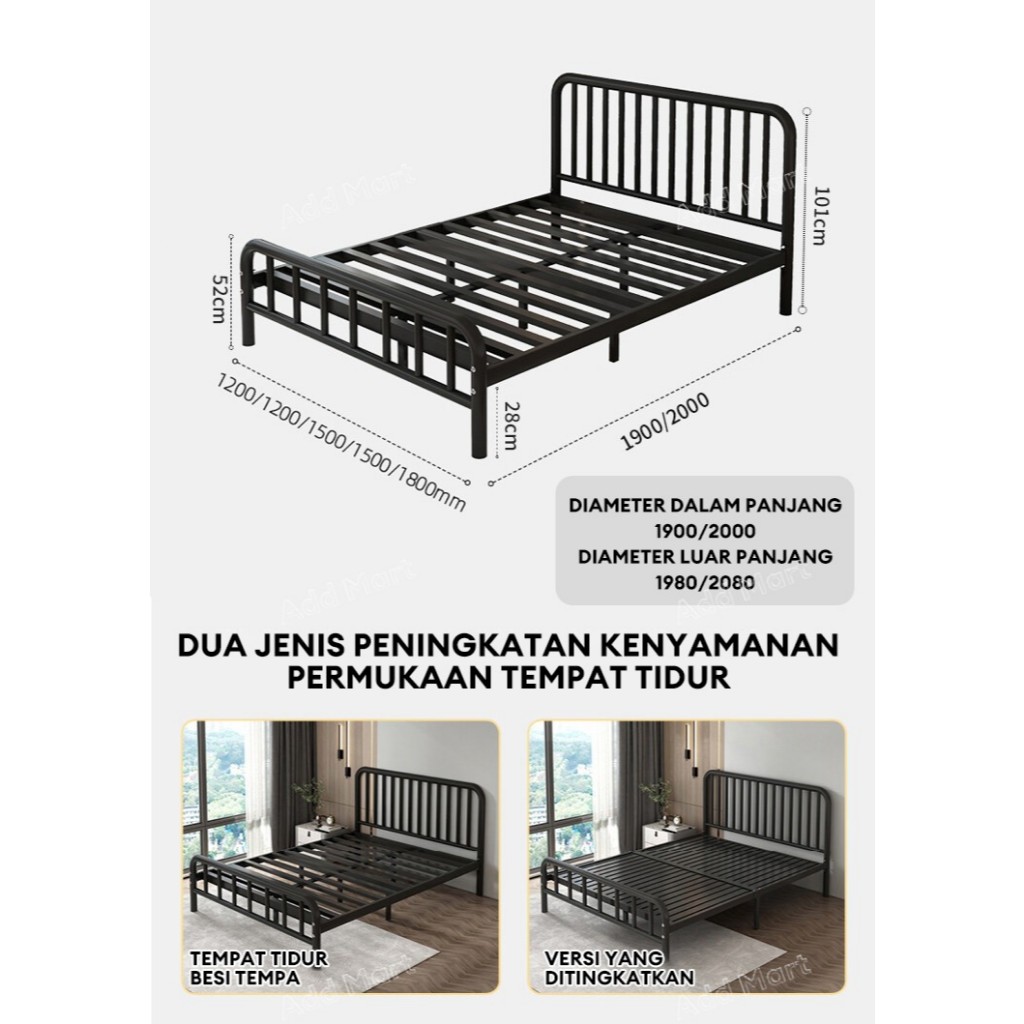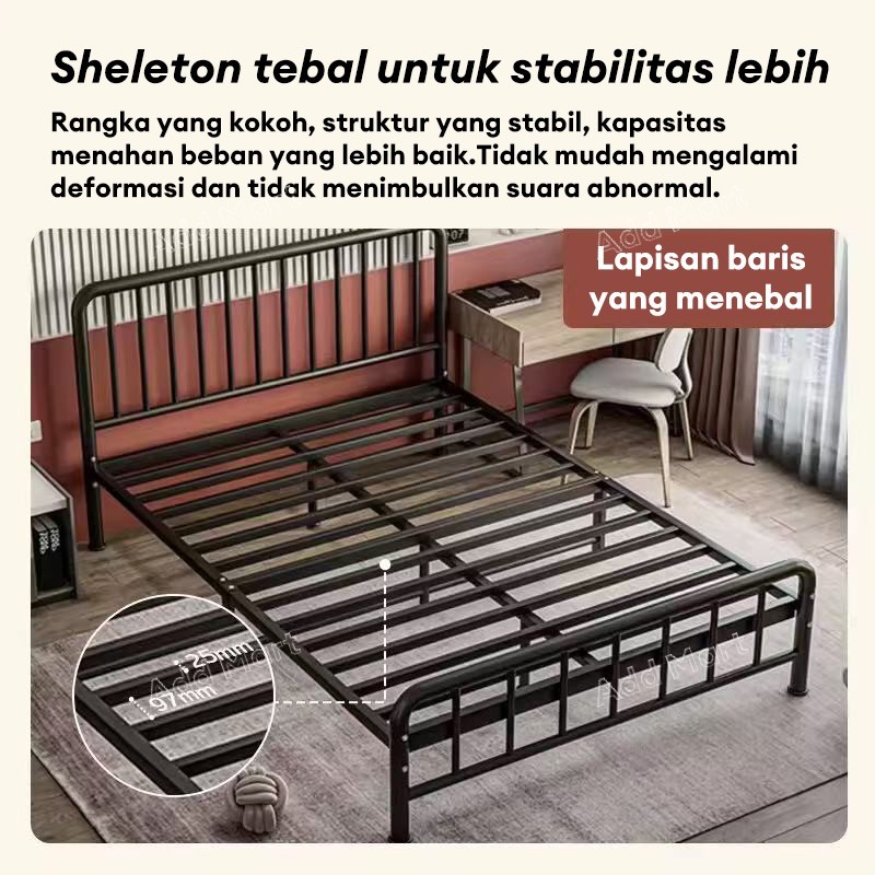 Tempat Tidur Besi / Dipan Kasur 180x200 / Ranjang Besi Rangka / Dengan Papan Tempat Tidur