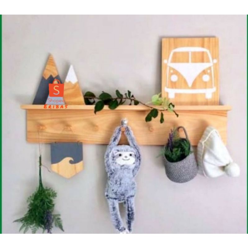 Rak dinding tempat gantungan kunci rak kayu serbaguna key holder