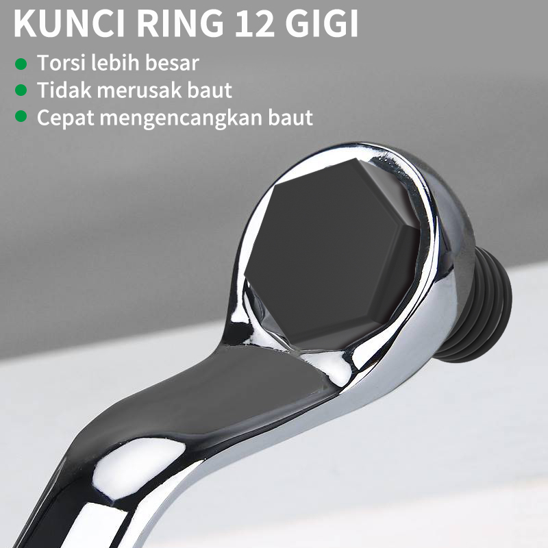 ISKU Kunci Ring Pas Set 11 pcs 8-27mm Alat Perkakas Tools Kunci Ring Pas 1 Lengkap