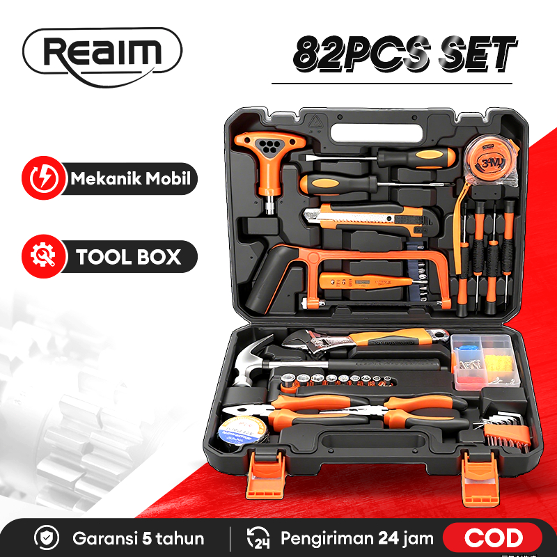 Reaim Kunci Set Lengkap 82pcs Tool Kit Impact Wrench Ruman Kunci Ring Pas Set Kunci Shock Sok Set Wrench Obeng