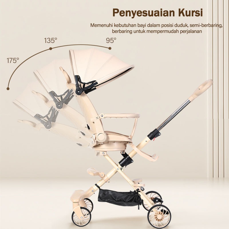 Topborn Stroler Kereta Bayi Lipat Hemat Duduk Tidur 2 Arah Adjustable Ringan Usia 6-48 Bulan Kereta Dorong Bayi Terlaris