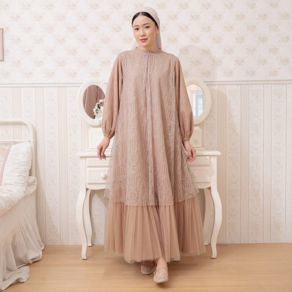 HijabChic Syahira Mocca Dress - Gaun Brukat Tulle Kondangan Elegan Best Seller