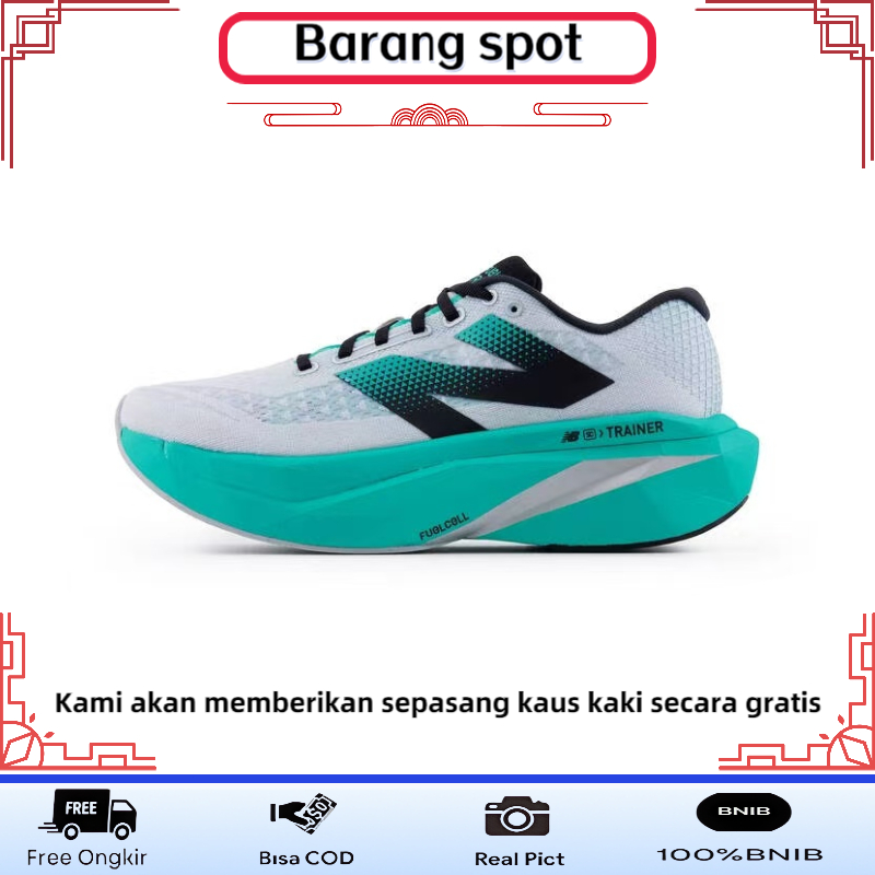 Sepatu lari FuelCell SuperComp Trainer v3, pelat karbon, anti selip, tahan aus, fashionabel dan serbaa.