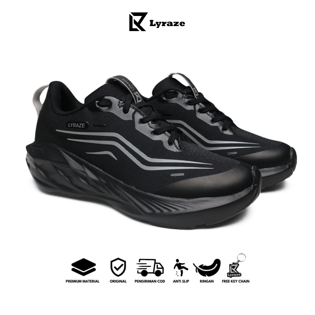 Lyraze Faster Sepatu Running Pria Hitam | Sepatu Lari Pria Olahraga Cowok Outdoor