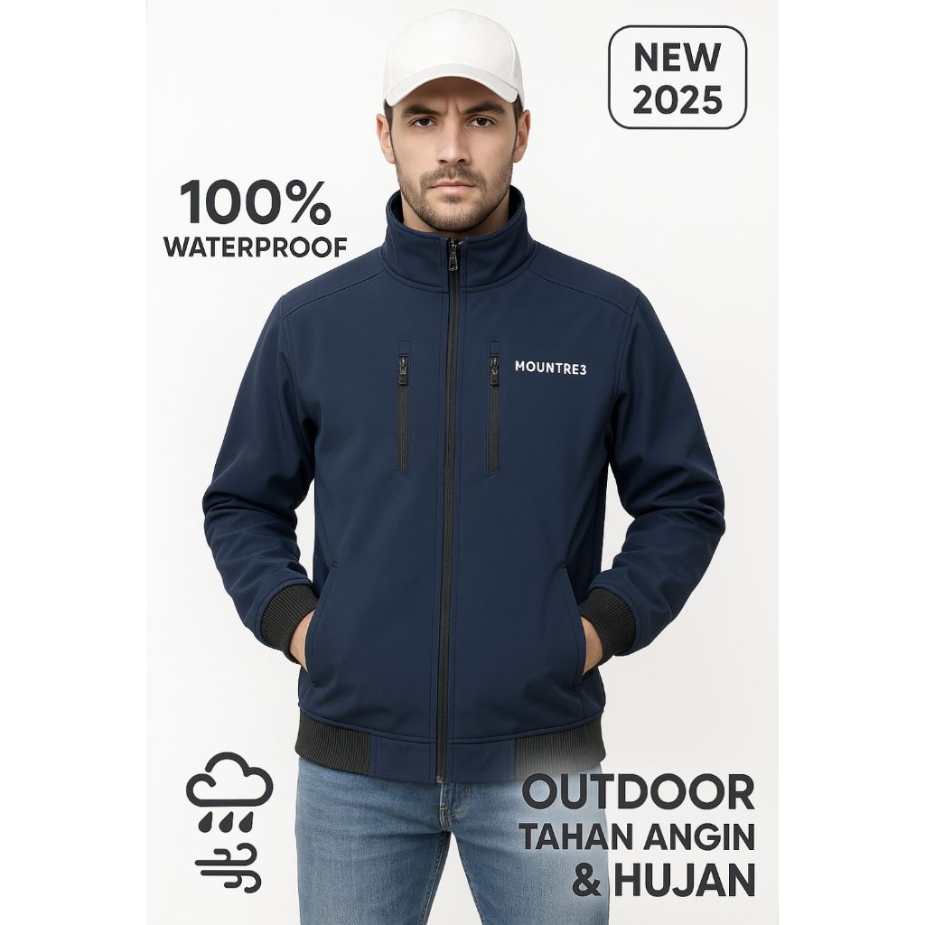 Jaket Motor Pria Anti Air Mountre3 - Bahan Taslan Bonding, Windproof & Waterproof