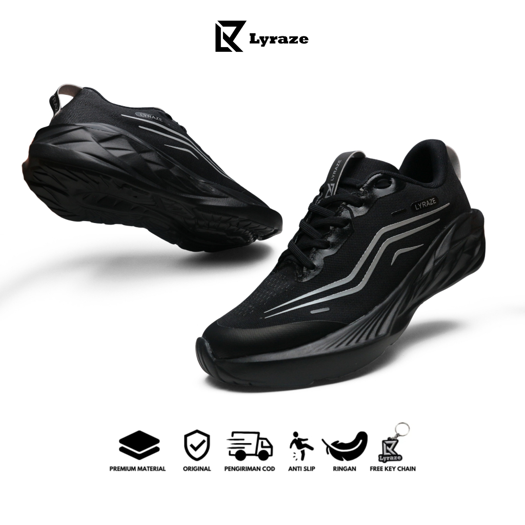 Lyraze Faster Sepatu Running Pria Hitam | Sepatu Lari Pria Olahraga Cowok Outdoor