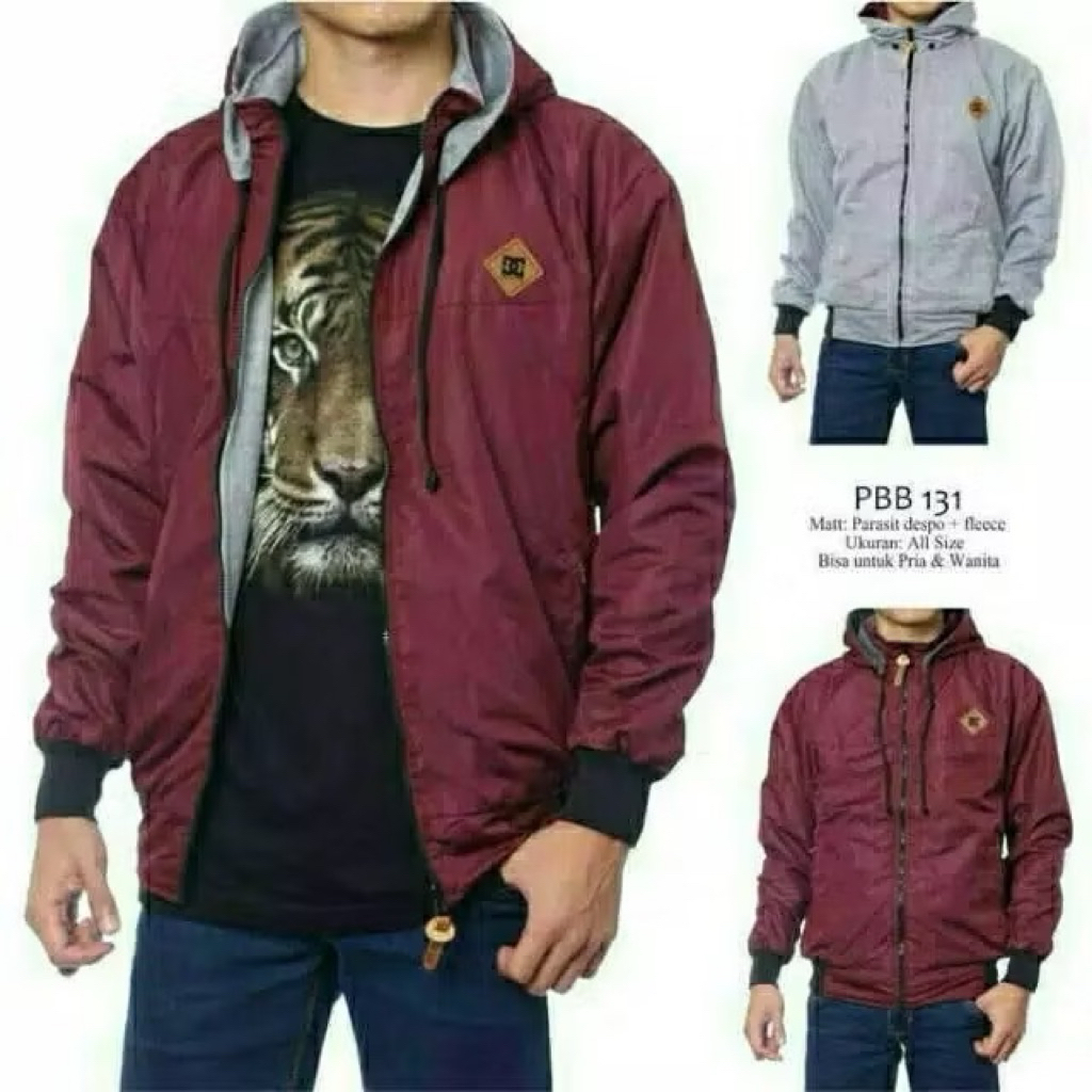 TURUN HARGA Jaket Bolak Balik Pria BB 2in1 Parasut Fleece M L XL XXL
