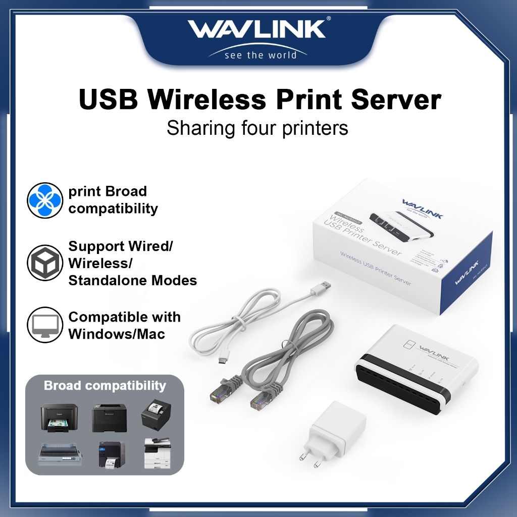 Wavlink Server Cetak Usb Wifi Raw 2 Port Lan 100Mbps & Bridge 100Mbps Support Wired/Wireless/Standalone Modes