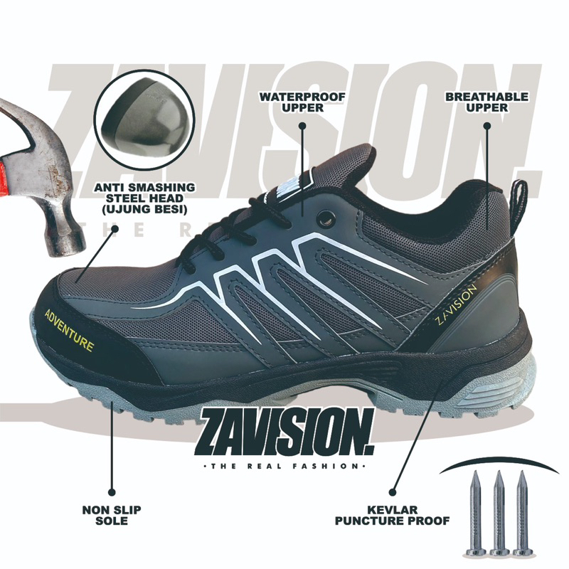 Zavision Sepatu Safety Ujung Besi Kokoh Sepatu Gunung Pria Sepatu Proyek Kerja Pria Sepatu Adventure Sepatu Hiking Z-16