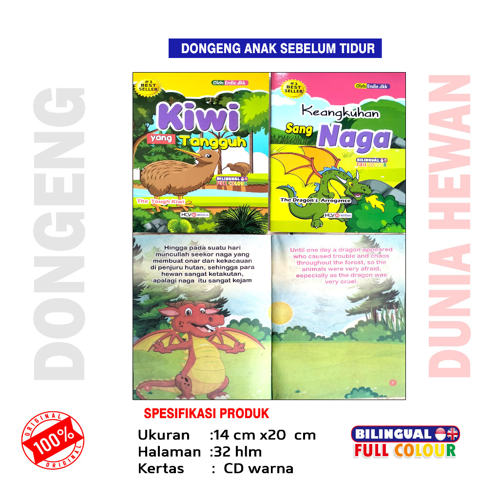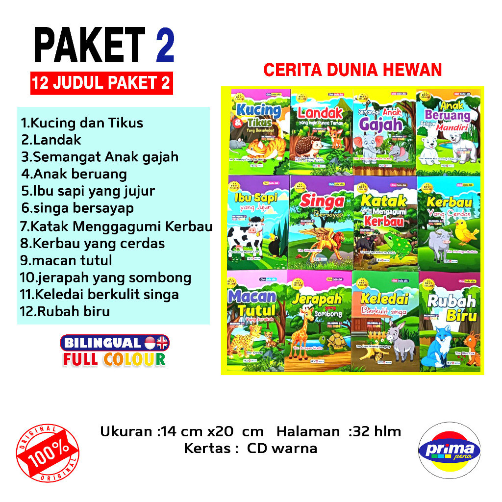 Buku Dongeng Anak Inspiratif Dunia Hewan paket 12 buku/Blingual
