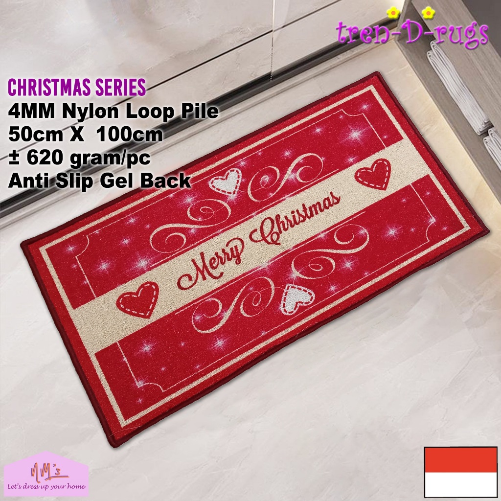 Keset Natal Christmas Dapur Panjang Kaki Kamar Bulu Anti-slip Murah 50 cm x 100 cm - Nms