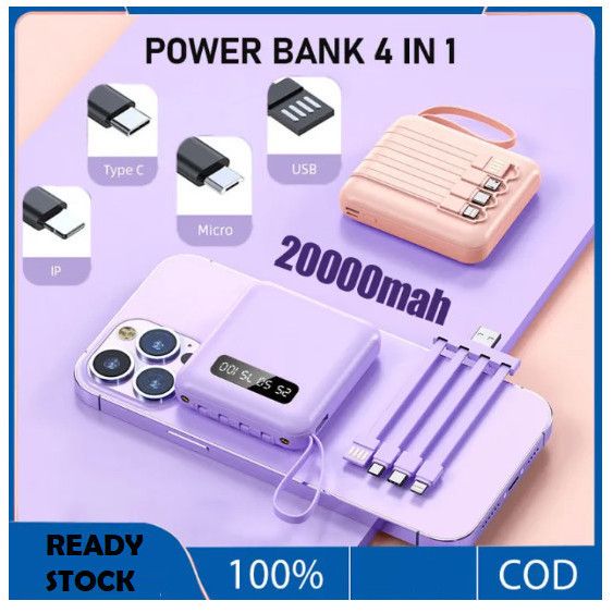 RK - SMARTCOM - Powerbank Mini 20000mAh 4in1 Fast Charging Lightweight LED