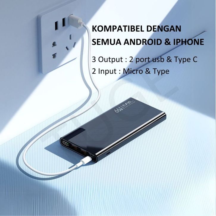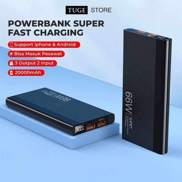 RK - TUGE 66W Powerbank Fast Charging 20000mAh LED Display 2 Output Port USB & Type C Flight Friendly