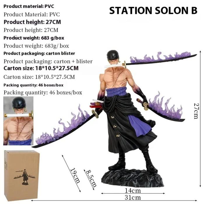 (54)Statue One Piece Roronoa Zoro Standing Santoryu Design Recast / Zoro 27cm