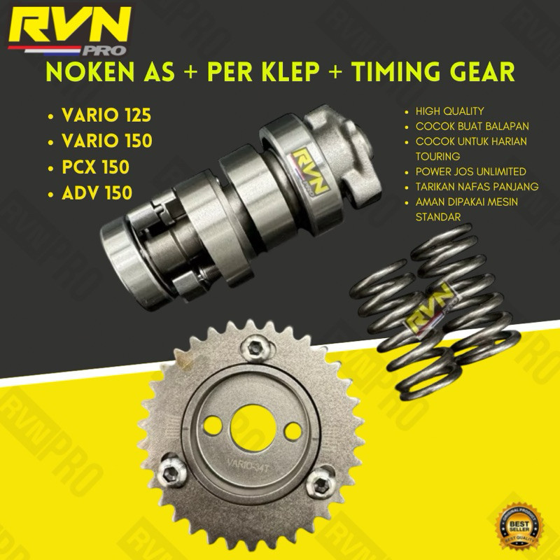 RVN PAKET 3IN1 NOKEN AS GIGI SENTRIK PERKLEP VARIO 150 125 PCX 150 ADV 150 LIFT 5.8MM SET CAMSHAFT TIMING GIR GEAR GESER