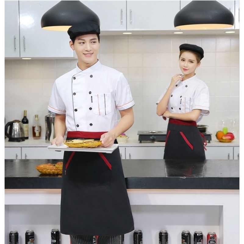 Kitchen.Official Baju Kameja Koki Chef Jacket Lengan Pendek Seragam Masak Unisex Pria Wanita