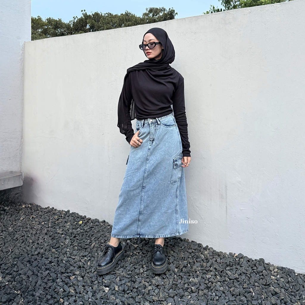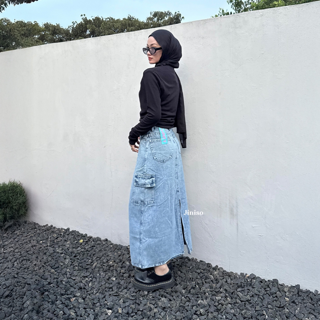 JINISO - Highwaist Rok Cargo Jeans Panjang 983 SEVENTY