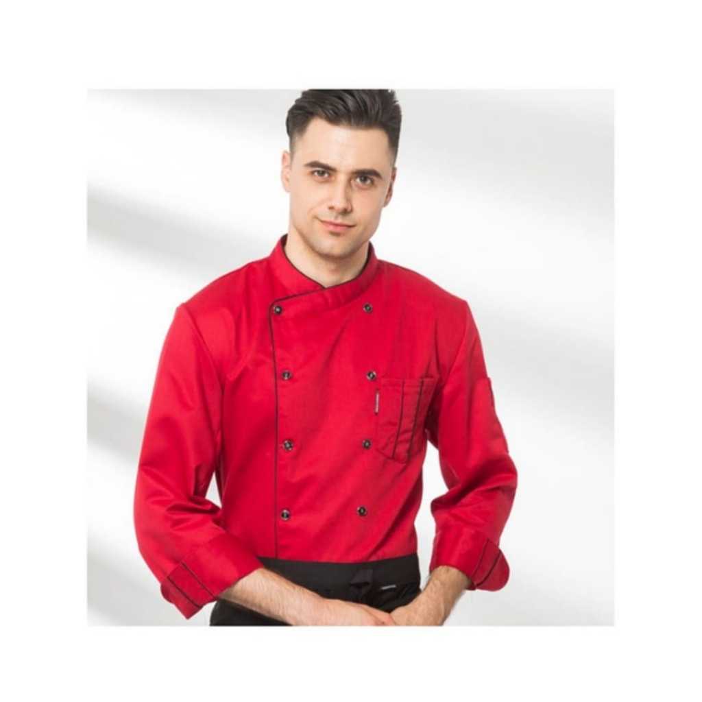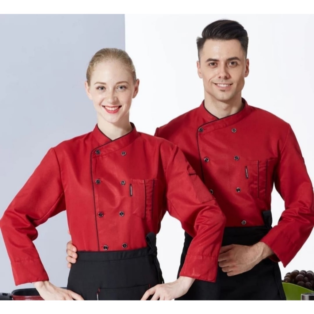 Kemeja Kerja Baju Koki Chef Jacket Lengan Panjang Pria Wanita Bahan American Drill gg00ldss Kitchen