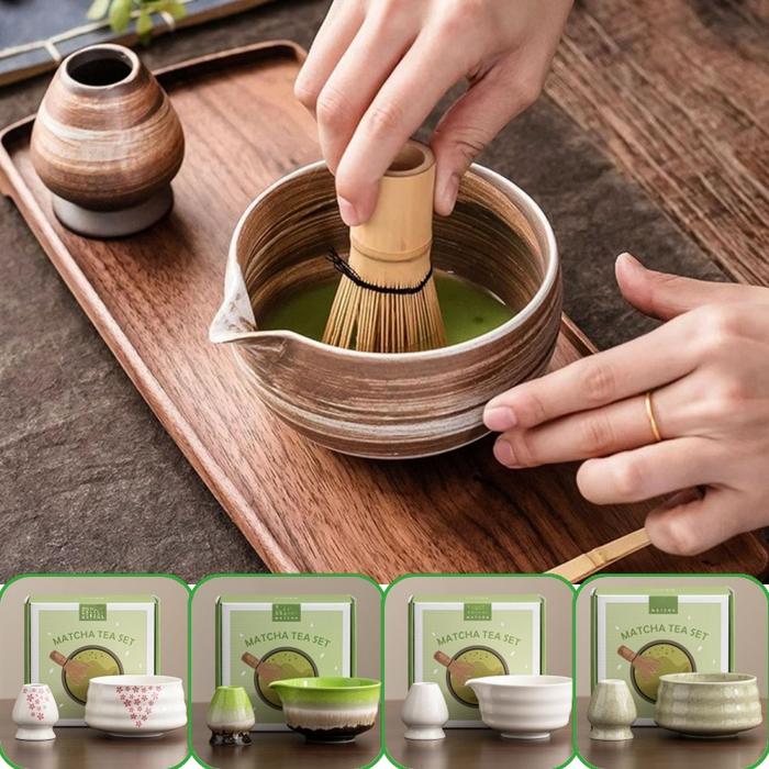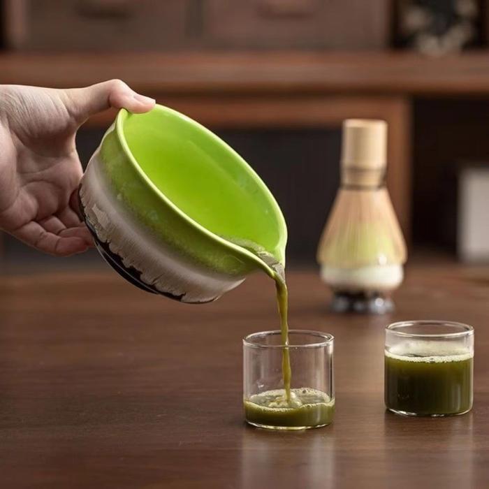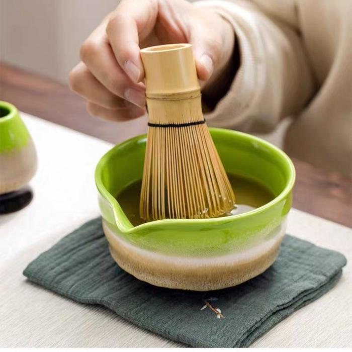 MATCHA BOWL CERAMIC SET CHASEN 2 IN 1/ MANGKUK KERAMIK ARTISTIK TEH TRADISIONAL/ALAT MATCHA MAKING SET PENGADUK MATCHA BAMBU MANGKUK - HIJAU MATCHA-2PCS